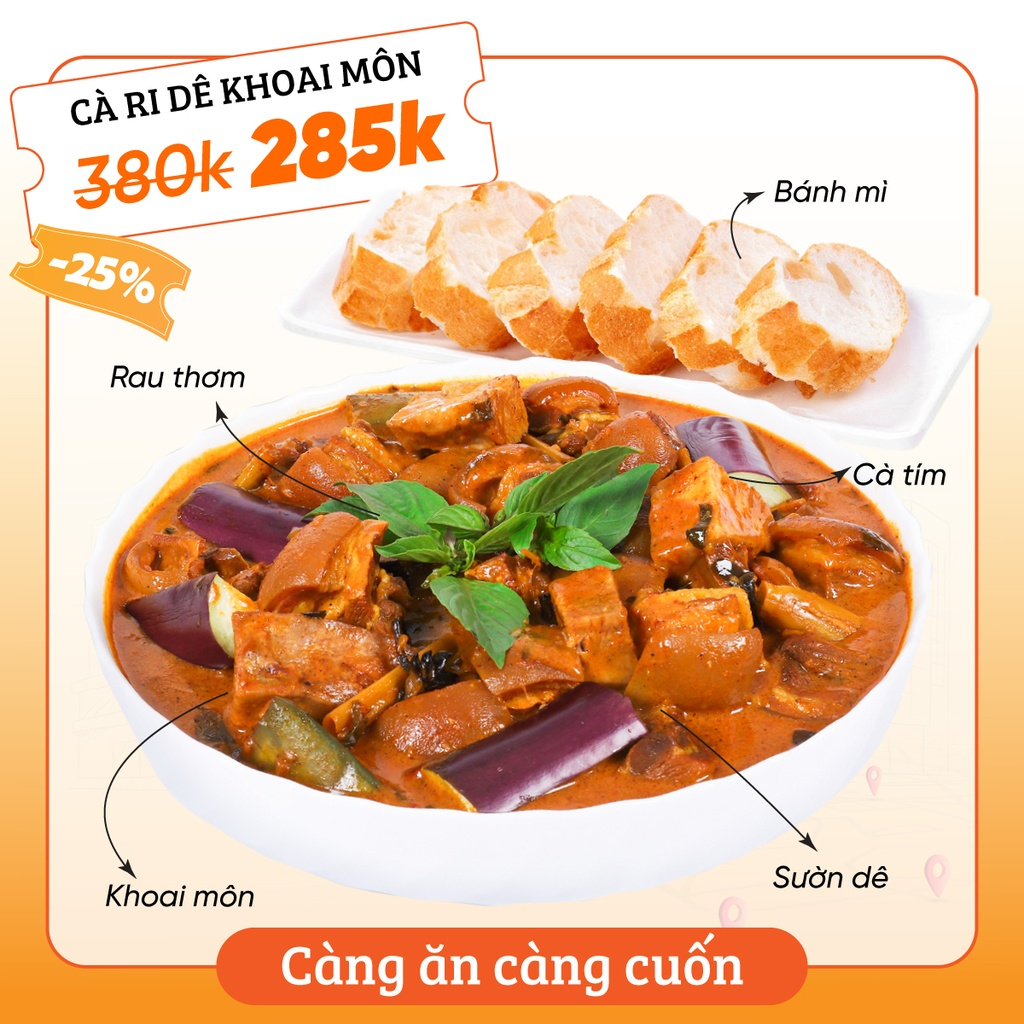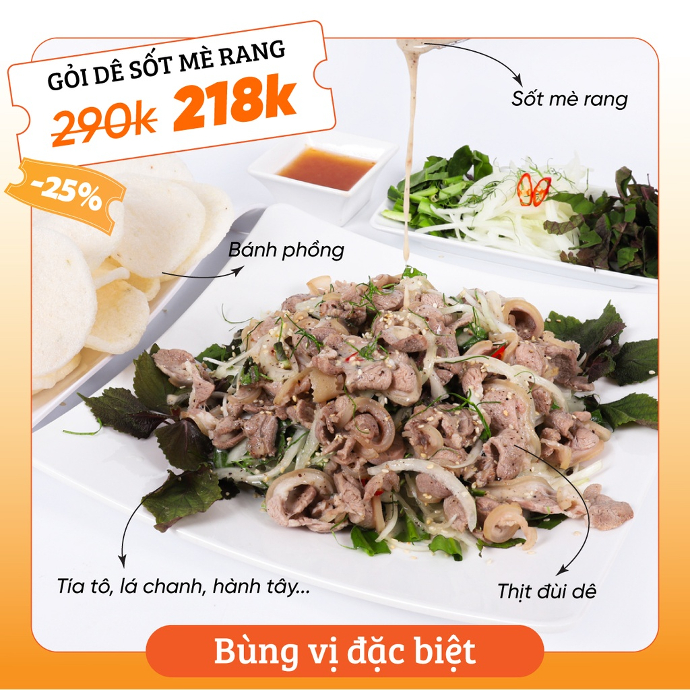 Ưu đãi áp dụng với 3 món dê mới bao gồm: Cà-ri Dê Khoai Môn, Gỏi Dê Sốt Mè Rang, Lẩu Dê Củ Sen.