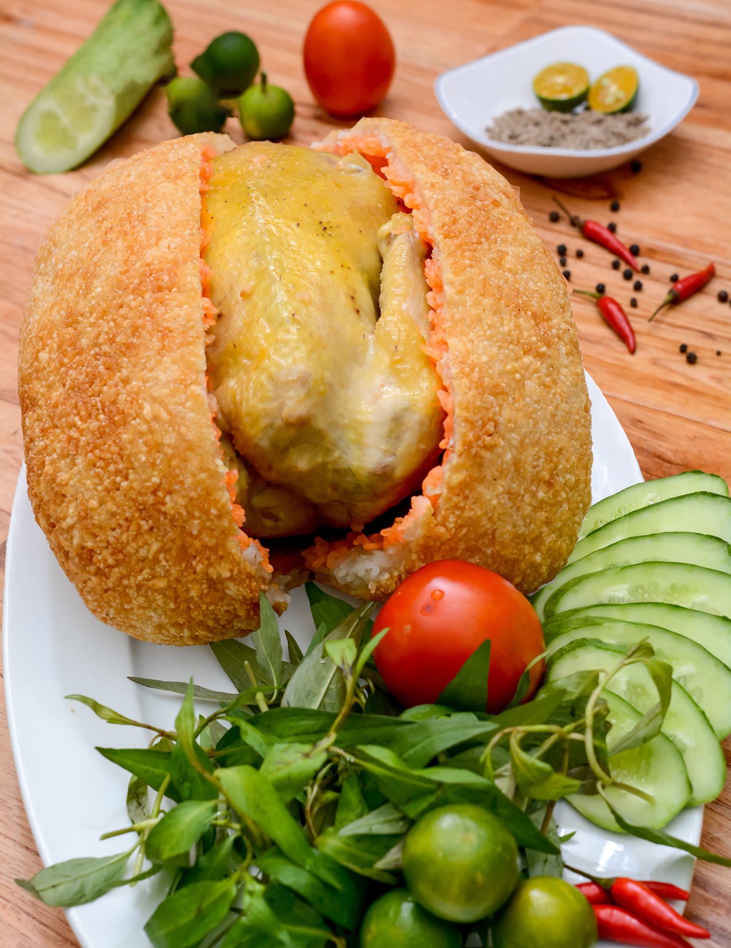 Gà là thực phẩm quen thuộc trong ẩm thực của người Việt Nam. Thưởng thức miếng gà thơm ngon vừa chín tới nằm gọn trong miếng xôi trắng mùi lá dứa chiên giòn và vàng ươm. Những quả trứng non béo ngậy cùng hạt sen ngọt bùi trong bụng gà tạo nên hương vị rất riêng và độc đáo. Món ăn vừa có thịt vừa có tinh bột đủ để thành món ăn nhanh kiểu Việt không lo nặng dầu mỡ, ngon mà không ngậy, gần gũi với khẩu vị của nhiều người.