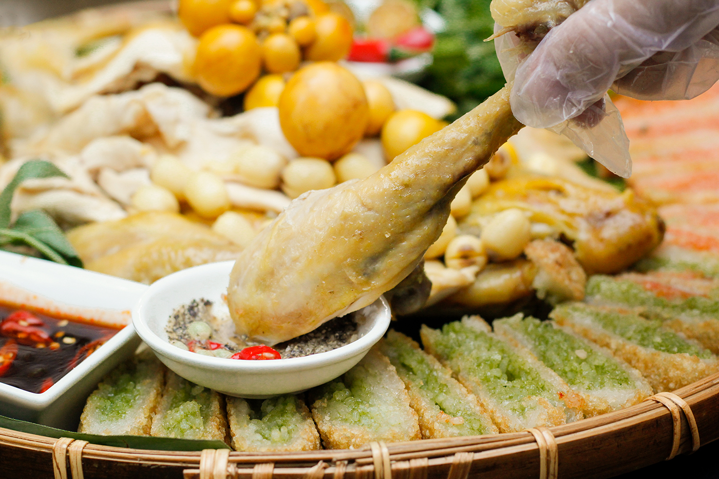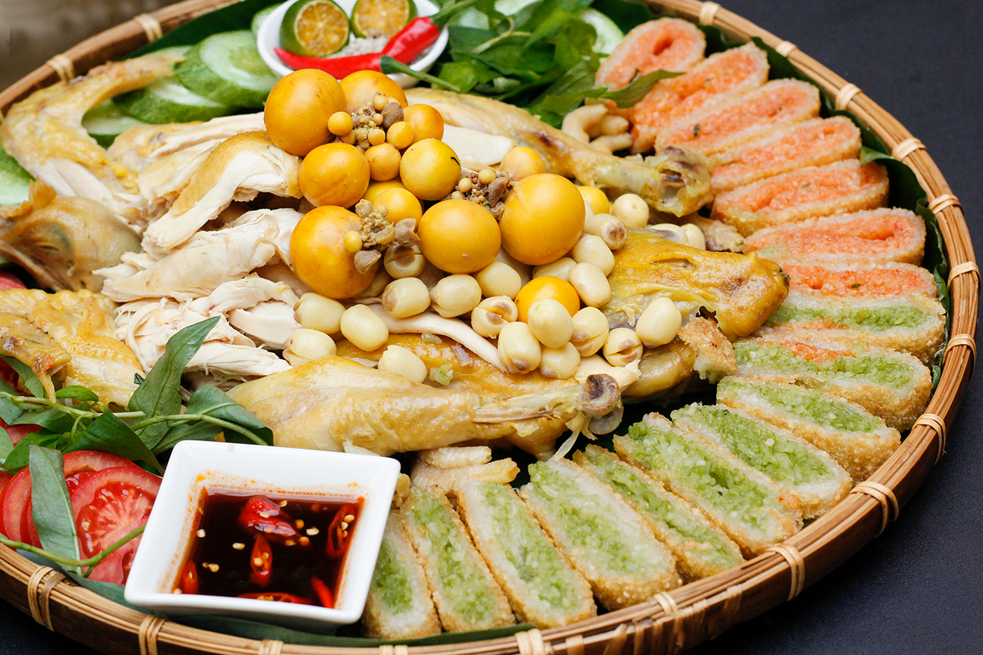 GÀ BÓ XÔI 3 MÀU ÔM TRỨNG HẠT SEN