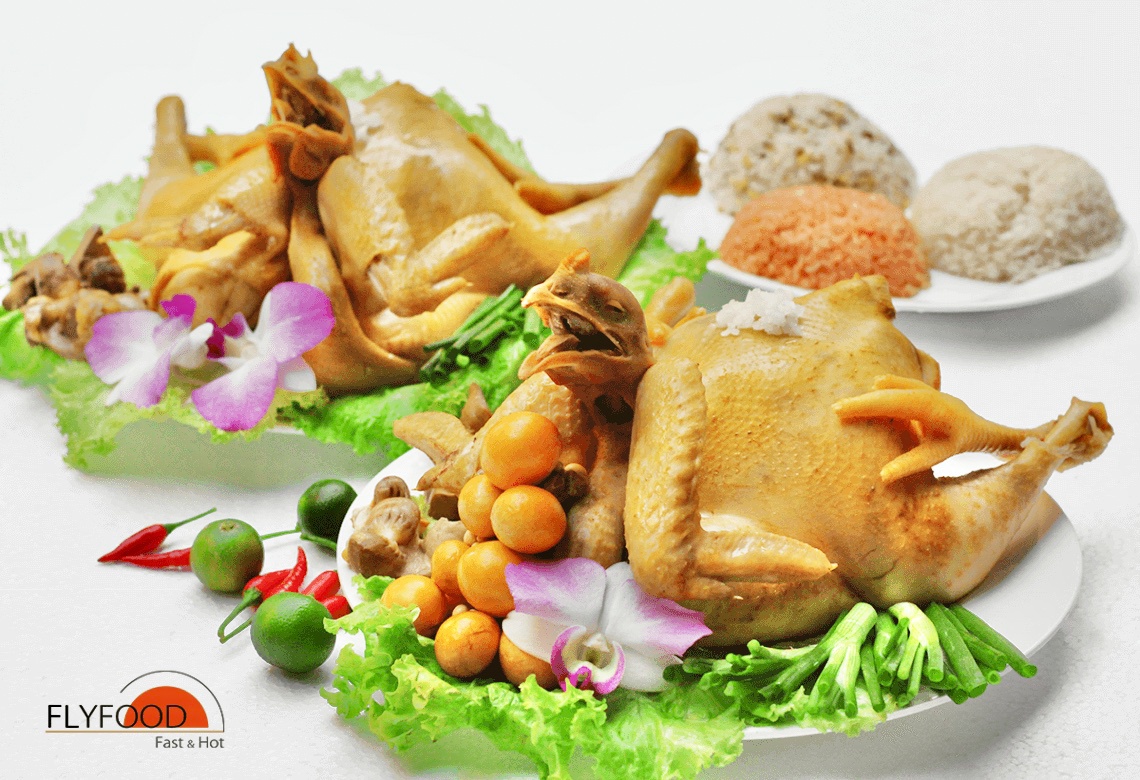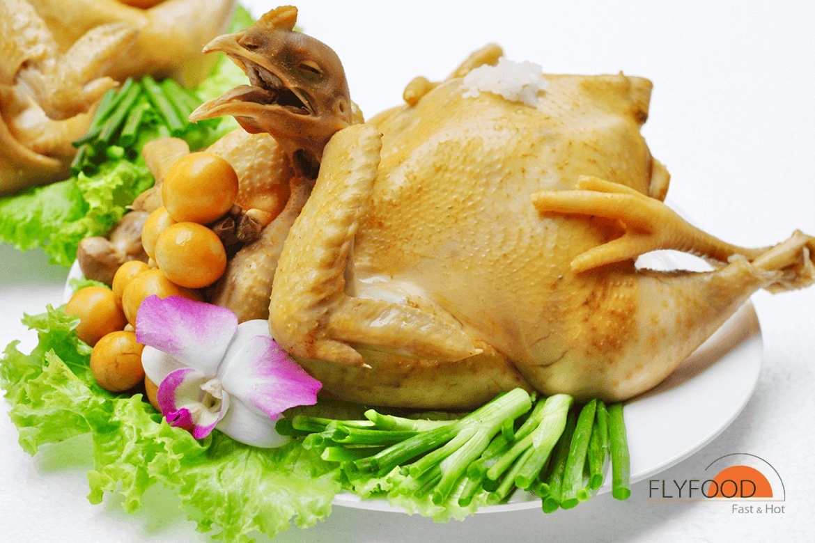 FLYFOOD dùng gà ta thả vườn làm gà cúng có phân loại gà trống hoặc gà mái. Món không chỉ ngon mà còn đẹp mắt, sang trọng phù hợp để cúng trong mọi trường hợp. Gà ta chéo cánh, hấp cách thủy, đầy đủ gan mề kèm với 3 chén xôi gấc.