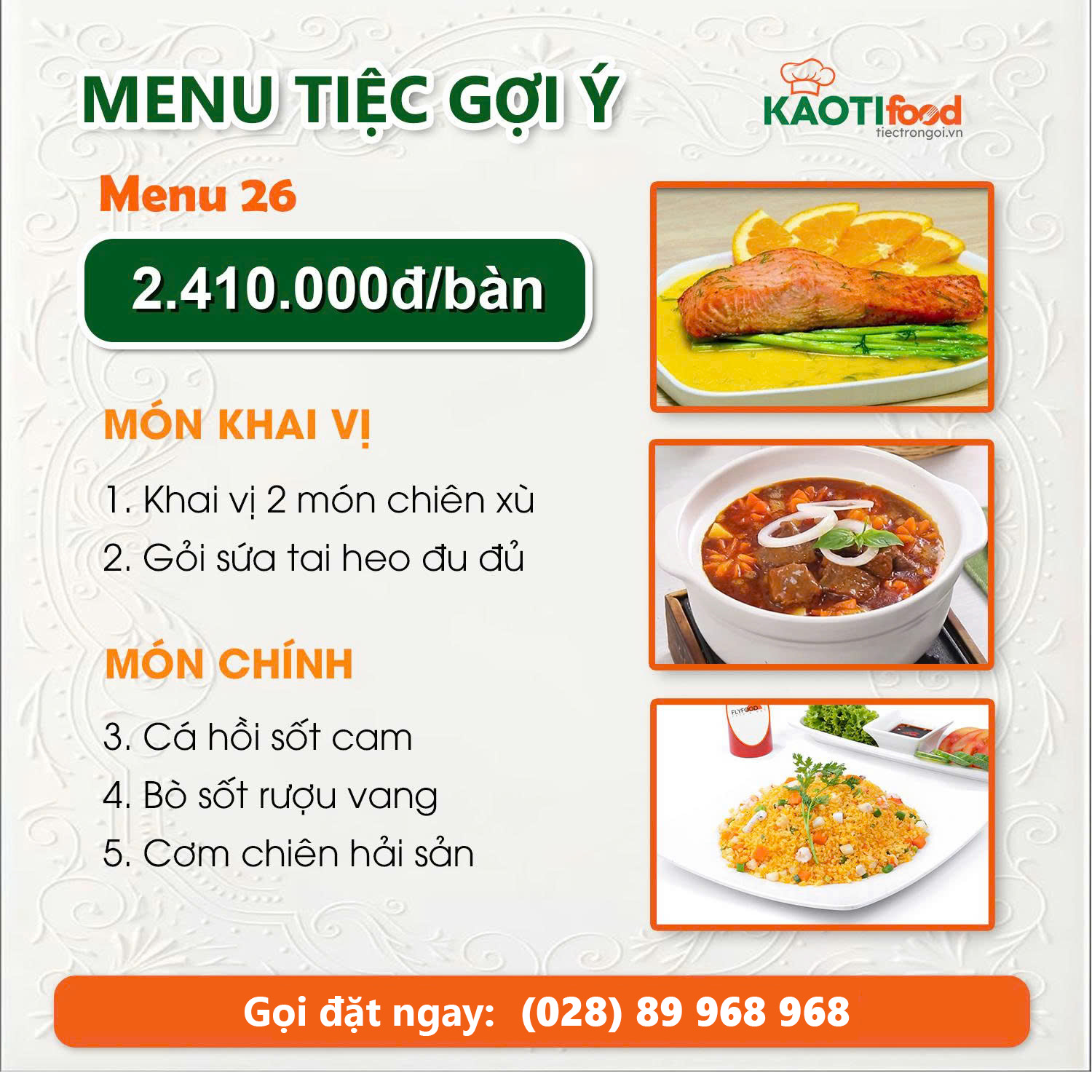✔️Thực đơn từ 1.800k -> 3.990k .